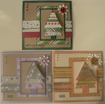 Het kaartje met de kerstboom vond ik zo leuk om te maken,dat ik hem gisteren nog maar 2 keer heb gemaakt,alleen dan met ander papier en andere kleuren.